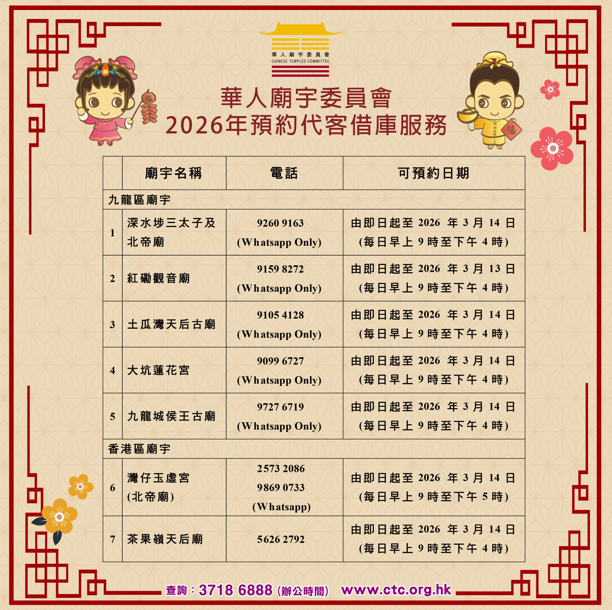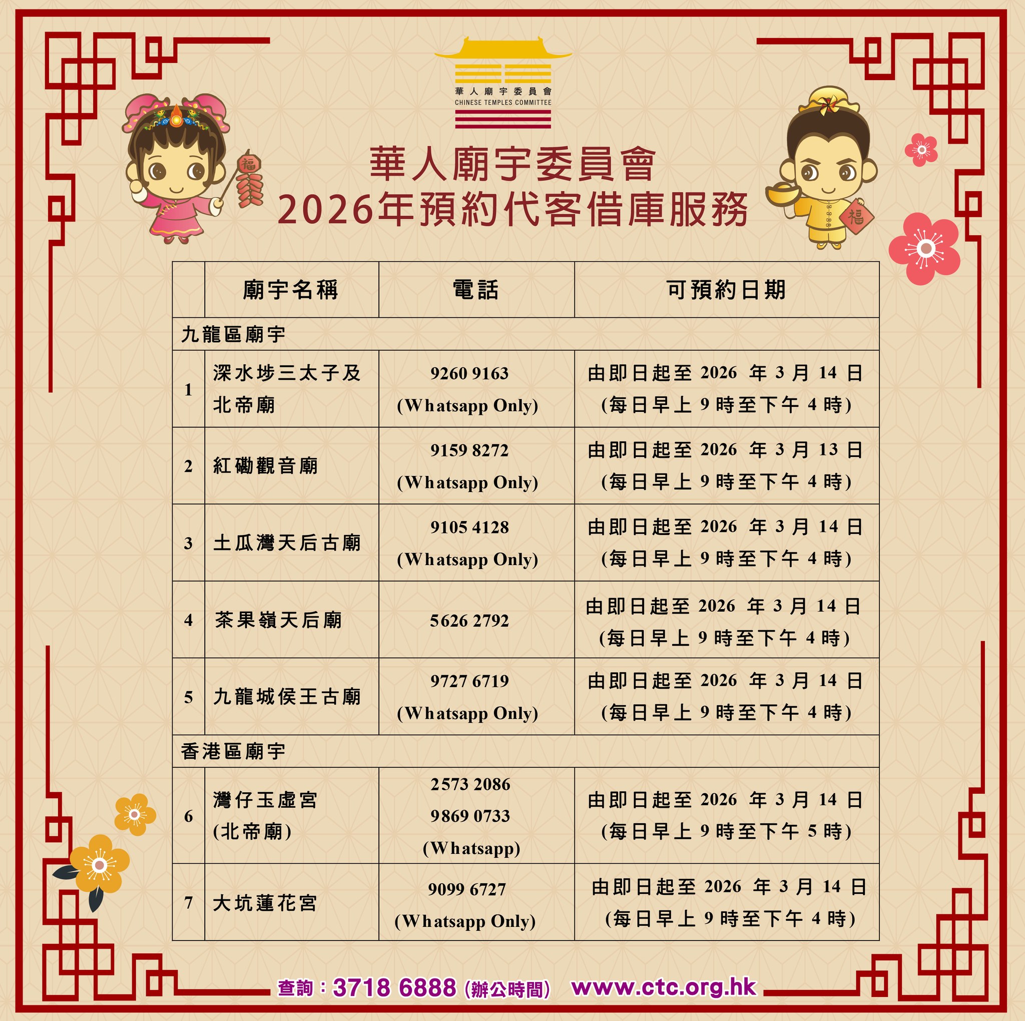 2026年沙田車公廟車公誕及農曆新年期間的特別開放時間