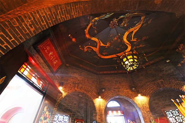 Although the temple followed a Chinese two-hall vernacular building structure, the front hall with a double-eaves-pyramidal roof is in half-octagonal shape. No pavilion was built in-between the two halls. The front and rear hall are separated into two wings in different levels. Both of the halls can find an altar dedicated to the worship of Kwun Yum. Besides, altars dedicated to the worship of Tai Sui (Sixty Gods of Time) and Wai Tor (Buddhist Temple Guardian) can be found in the rear hall located on the upper level.