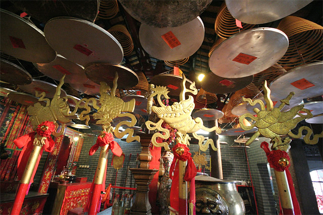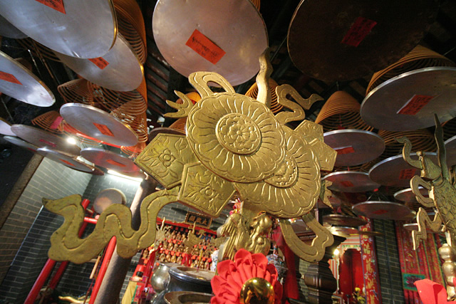 The eight weapons carried by the guards of honour in festivals are uniquely made. Each of them is a combination of auspicious symbols in Buddhism and Taoism. In Buddhism, eight auspicious symbols include Canopy, a pair of Fish, Lotus, Treasurable Vase, Conch, Victory Banner, Wheel and Endless Knot; in Taoism, eight auspicious symbols represent the eight immortals, namely Gourd (Li Tieguai), Sword (Lü Dongbin), Fan (Han Zhongli), Fish Drum (Zhang Guolao), Flute (Han Xiangzi), Castanets (Cao Guojiu), Flower Basket (Lan Caihe) and Lotus (He Xiangu) respectively.